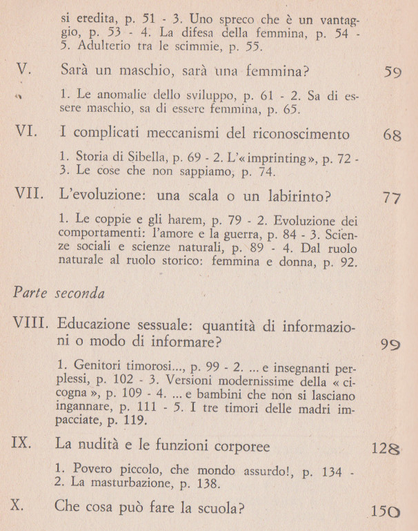 Laura Conti vi analizza aspetti della consapevolezza sessuale sin dall’infanzia fino all’adolescenza, sottolineando la costruzione sociale e psicologica delle identità di genere e delle attrazioni sessuali, come indicato anche in fonti collegate a quella opera.