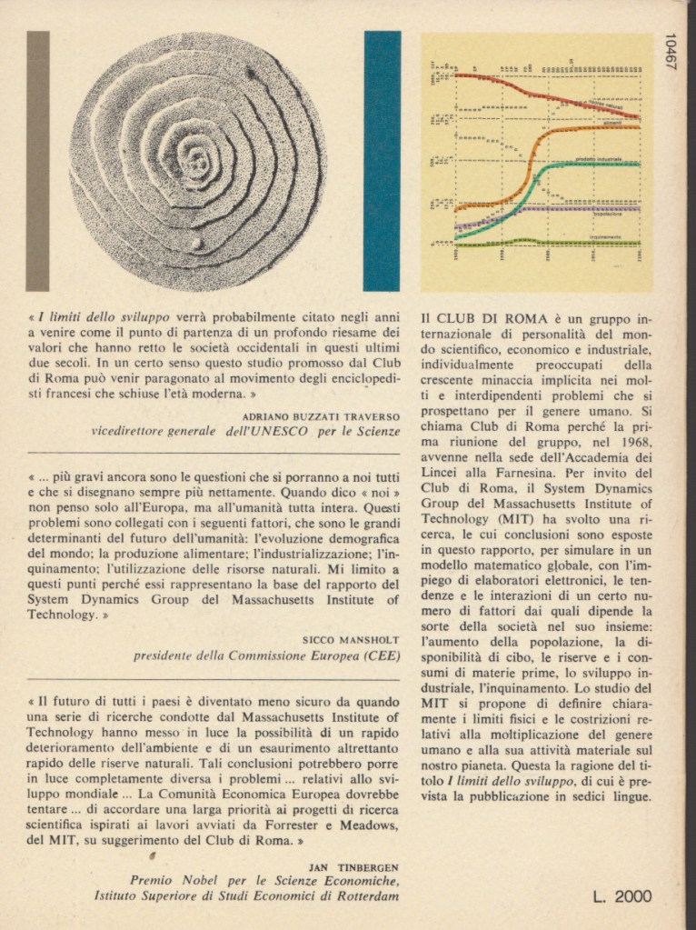 I LIMITI DELLO SVILUPPO, rapporto del System Dinamics Group Massachussetts Institute of Technology (MIT) per il progetto del Club di Roma sui dilemmi dell’umanità, 1972. Indice del libro