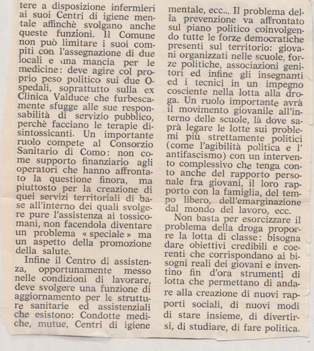 Paolo Ferrario, La fuga nella droga. Cause sociali e proposte per combattere le tossicomanie, in La Voce di Como, periodico a cura della federazione del Pci di Como, 1976