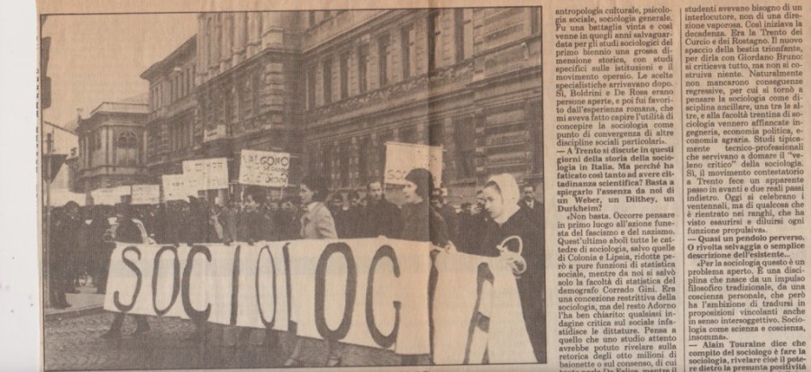 “La sociologia si è fermata a Trento” Vent’anni fa nasceva la prima facoltà destinata a questa disciplina. Quanta strada è stata fatta. Ne parliamo con Franco Ferrarotti, articolo del 16 febbraio 1984