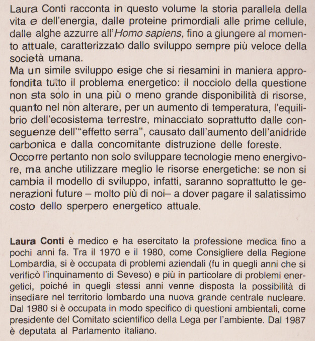 Laura Conti, Ambiente terra. L’energia, la vita, la storia, Arnoldo Mondadori editore, 1988. Indice del libro