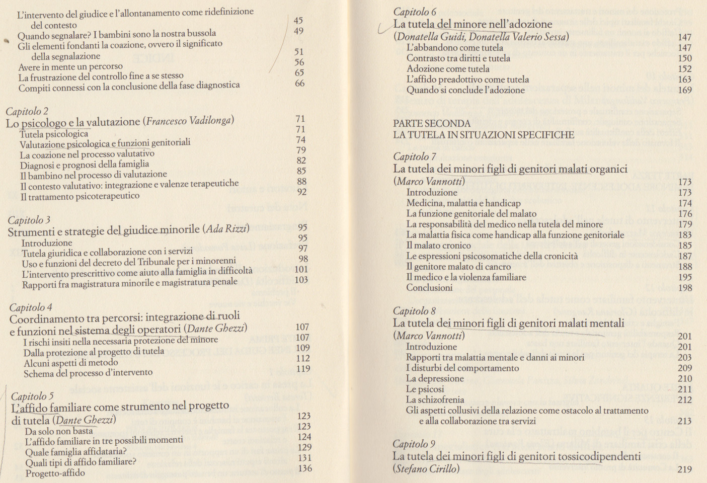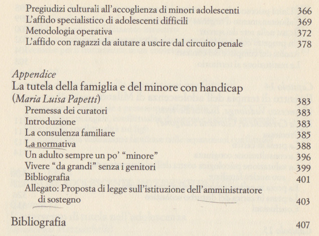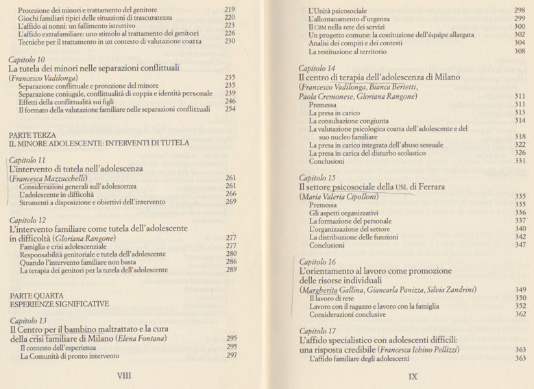La tutela del minore. Protezione dei bambini e funzione genitoriale, a cura di Dante Ghezzi e Francesco Vadilonga, Raffaello Cortina editore, 1996. Indice del libro
