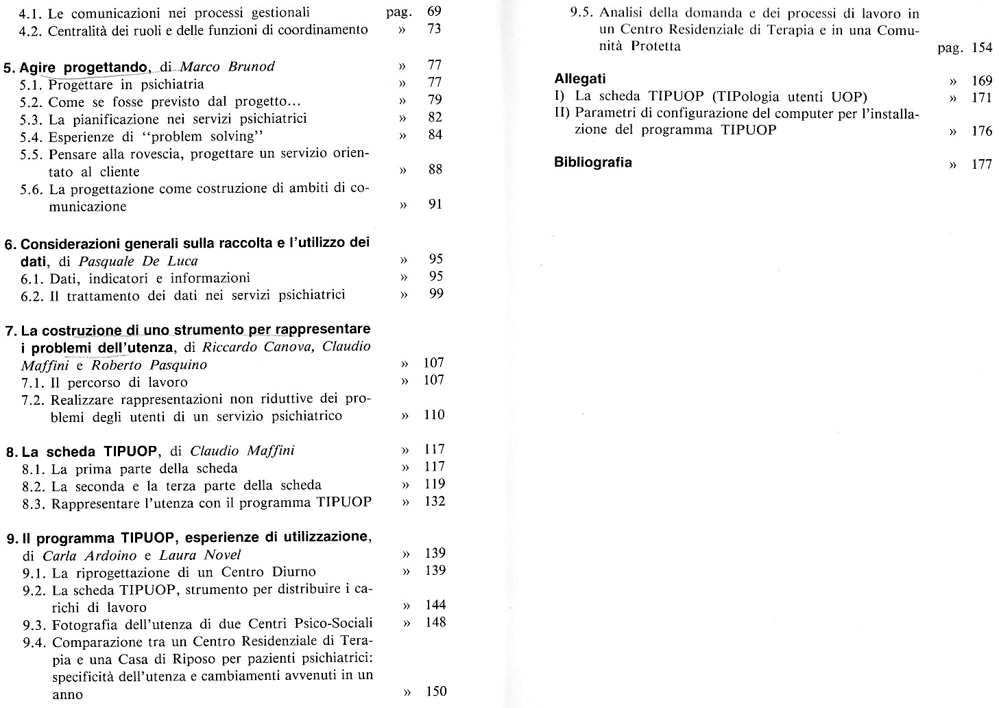 Costruire servizi in psichiatria, a cura di Marco Brunod e Franca Olivetti Manoukian, FrancoAngeli, 1998. Indice del libro