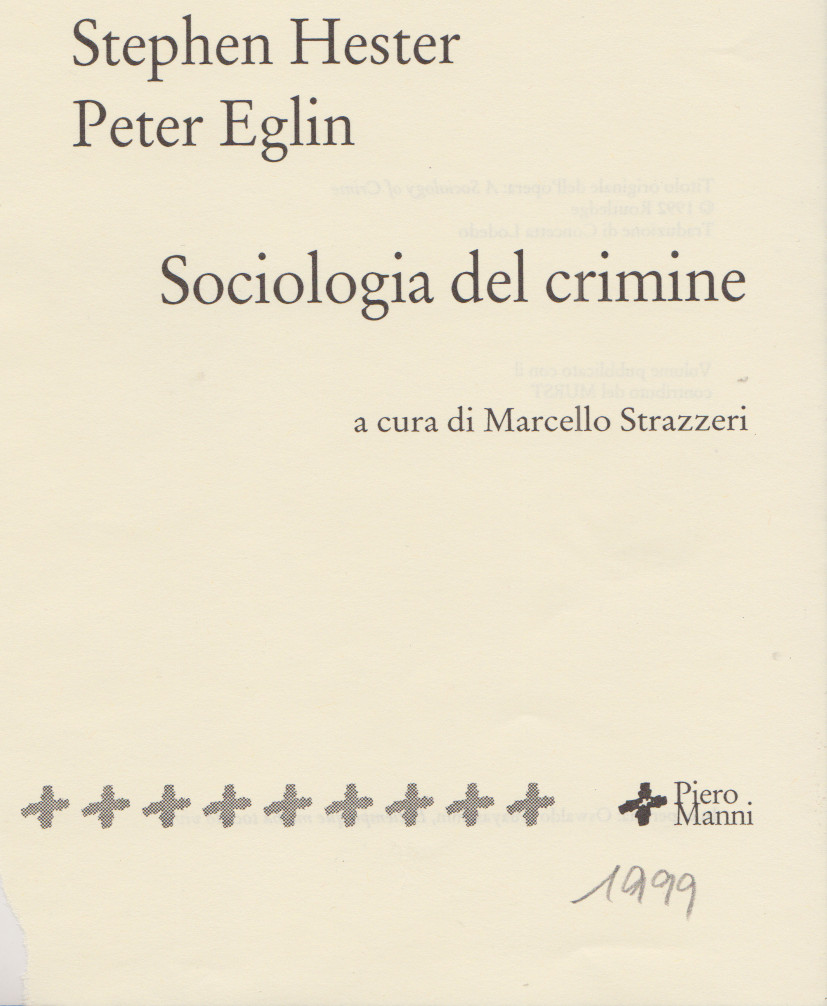 Stephen Hester, Peter Eglin, a cura di Marcello Strazzeri, Sociologia del crimine, Piero Manni editore, 1999
