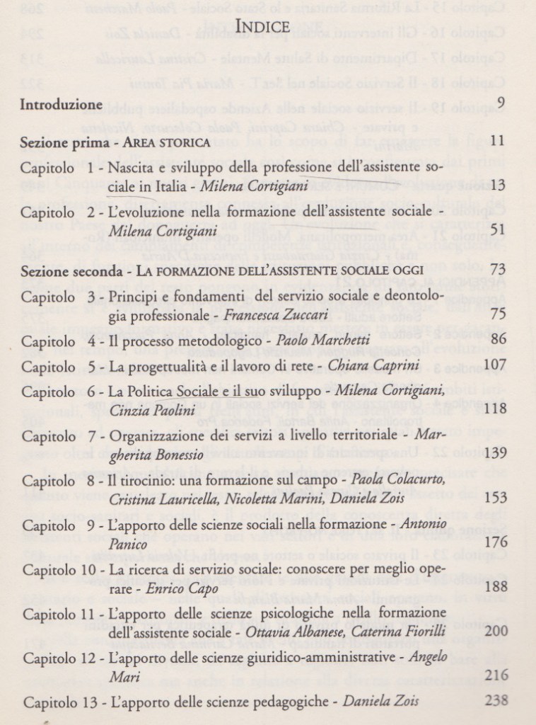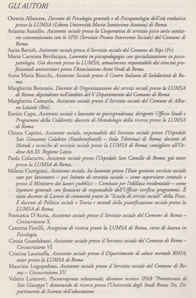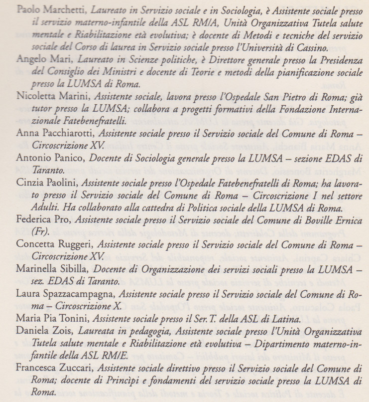 Cortigiani Milena (a cura di), L’assistente sociale e i suoi campi di intervento, Phoenix editrice, Roma, 2001, Autori e indice