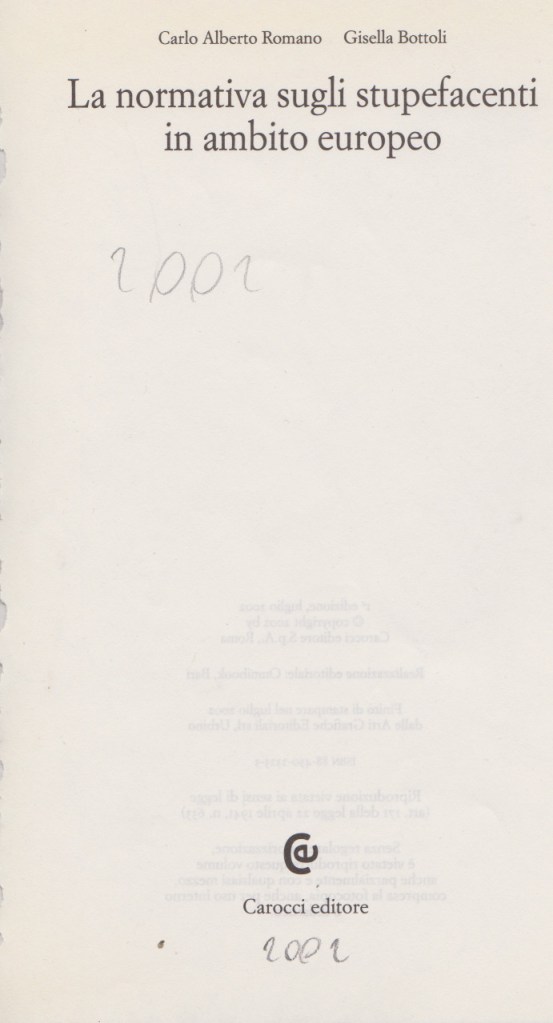 Carlo Alberto Romano, Gisella Bottoli, La normativa sugli stupefacenti in ambito europeo, Carocci editore , 2002