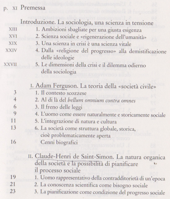 Franco Ferrarotti, Lineamenti di storia del pensiero sociologico, Donzelli editore, 2002. Indice del libro