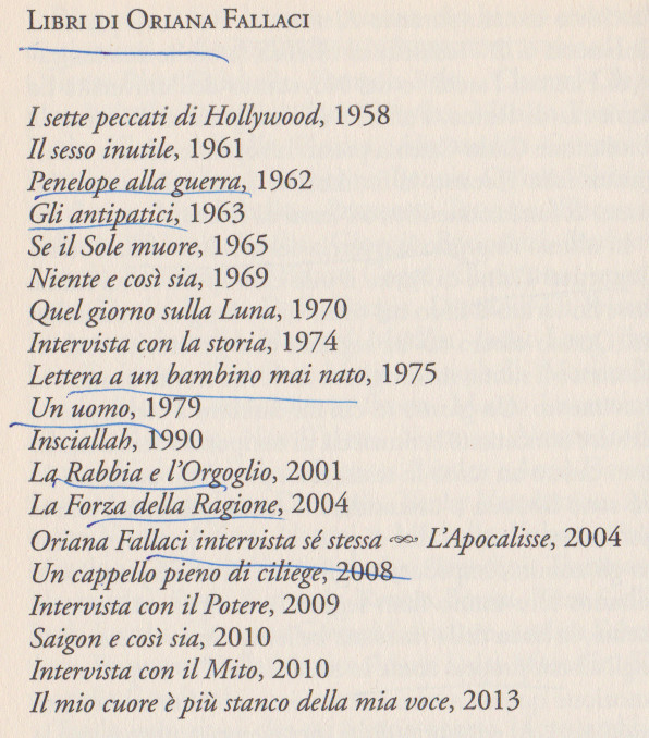 i LIBRI di ORIANA FALLACI (1929-2006)