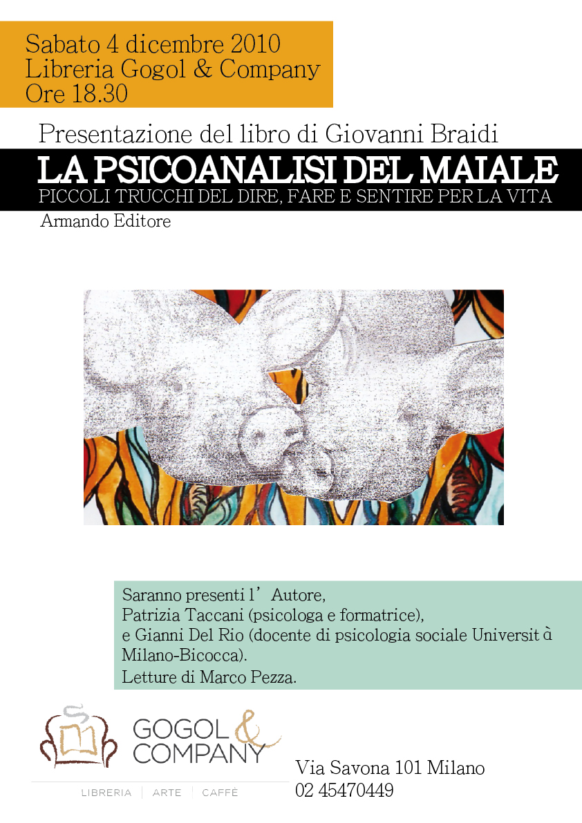 Giovanni Braidi, La psicoanalisi del maiale – trucchi del dire, fare e sentire per la vita, Armando editore, presentazione di Patrizia Taccani e Gianni del Rio