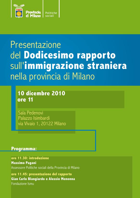 Presentazione del XII rapporto sull’immigrazione straniera, Provincia di Milano, 10 dicembre 2010, Palazzo Isimbardi, Via Vivaio 1