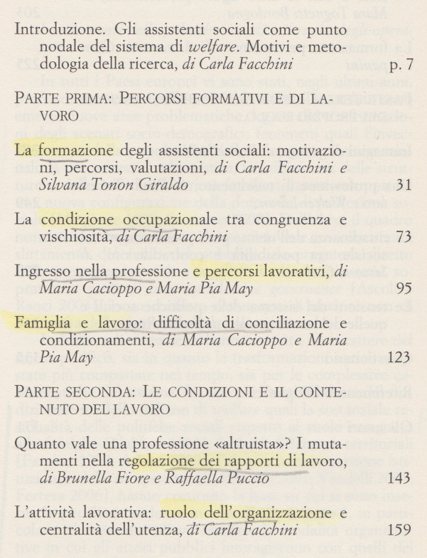 Analisi e riflessioni circa i mutamenti in atto nelle politiche sociali lasciano, di norma, in ombra i soggetti che traducono le impostazioni di fondo in pratiche quotidiane. Focalizzare l’attenzione sugli operatori dei servizi è invece una prospettiva interessante, specie se l’attenzione è posta sugli assistenti sociali, per la loro diffusa presenza e per il ruolo cruciale da essi svolto. Considerare il loro inserimento lavorativo, le attività effettivamente svolte e le valutazioni che essi danno ai mutamenti in atto permette, infatti, data la carenza di osservatori nazionali a riguardo, di effettuare una complessiva ricognizione dell’assetto dei servizi, cogliendone differenze territoriali e principali linee di tendenza. Nello stesso tempo, rilevare i modelli valoriali e le problematicità di questi operatori è importante per le ripercussioni che questi aspetti hanno sul concreto funzionamento dei servizi e sul rapporto con l’utenza. Diversi i temi rilevanti. Come sta evolvendo il ruolo di assistente sociale a seconda dell’ambito di intervento e dell’inquadramento contrattuale? Come si sta modificando il mercato del lavoro e quali problematicità pone il rapporto con le altre figure professionali e con la dirigenza? Quali sono le competenze e le capacità considerate fondamentali per il proprio lavoro e quali le difficoltà incontrate? Quali valutazioni vengono date alla formazione ricevuta e al passaggio all’università? In che misura gli impegni familiari incidono sulla professione? Si possono individuare specifiche generazioni, a seconda del percorso formativo e del periodo di inserimento professionale? Il volume affronta tali temi a partire da una ricerca nazionale condotta sia su un campione di 1.000 assistenti sociali, sia attraverso interviste qualitative a responsabili di servizi, di corsi di laurea e di associazioni di categoria.