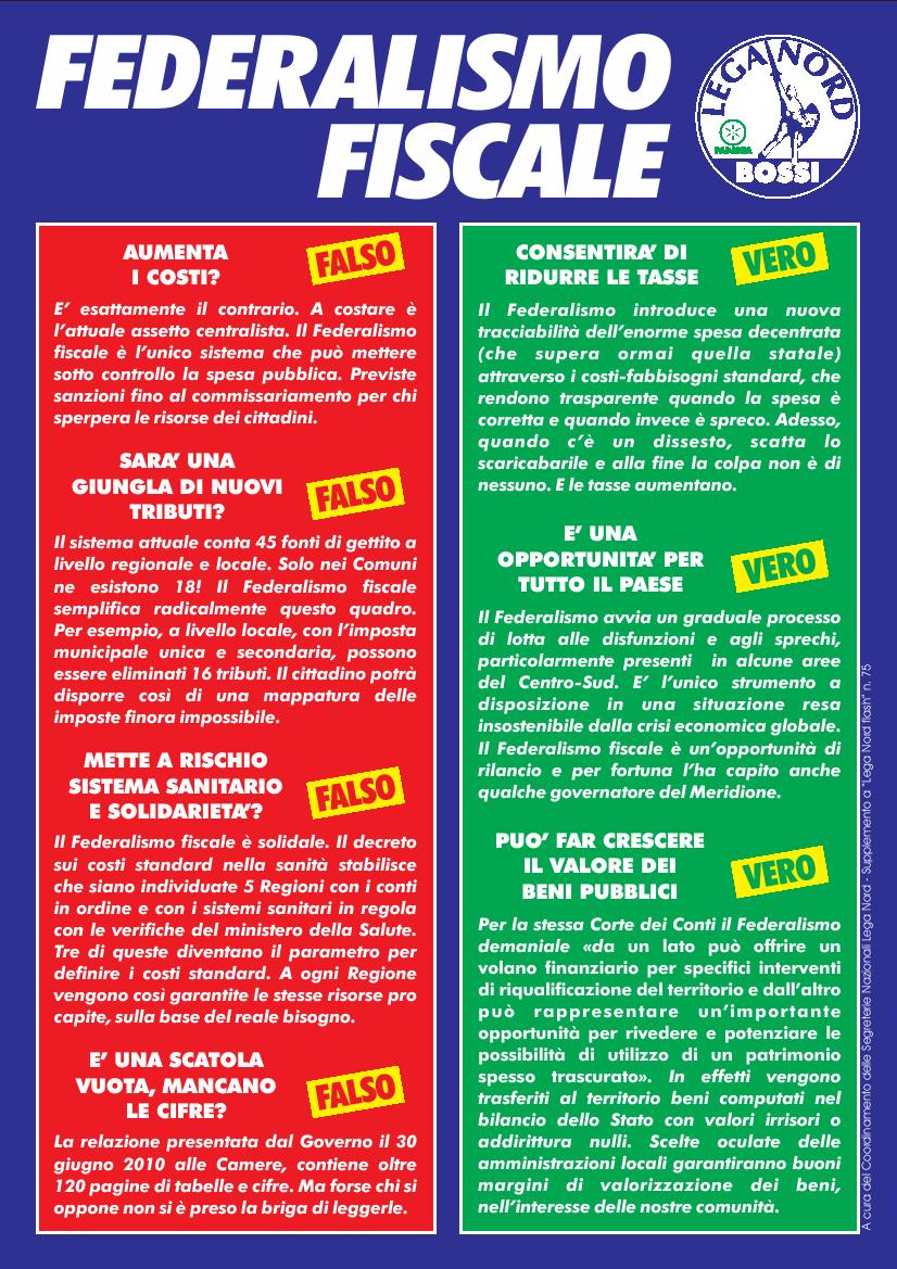 Lega Nord: volantino sulla loro concezione del “federalismo fiscale”