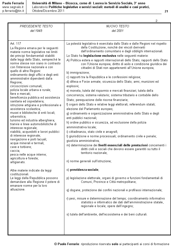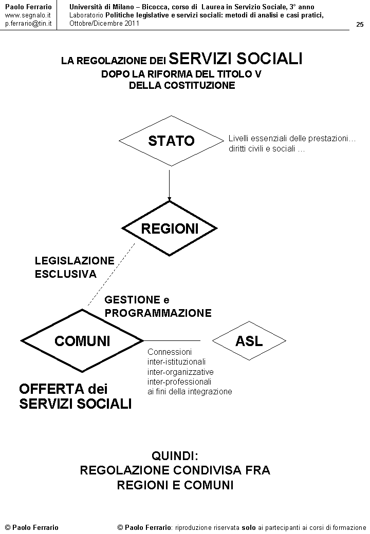 Paolo Ferrario, Dispensa n. 2, Mappe e Matrici per l’analisi del sistema istituzionale di offerta dei servizi e la regolazione normativa dopo la riforma costituzionale n. 3/2001