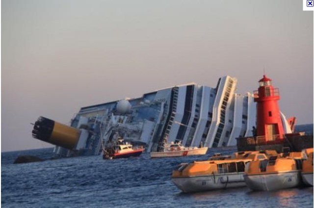 L’immagine della nave Costa Concordia ferita ed inclinata verso il precipizio è la perfetta e drammaticamente vera metafora dell’Italia sull’orlo del baratro.