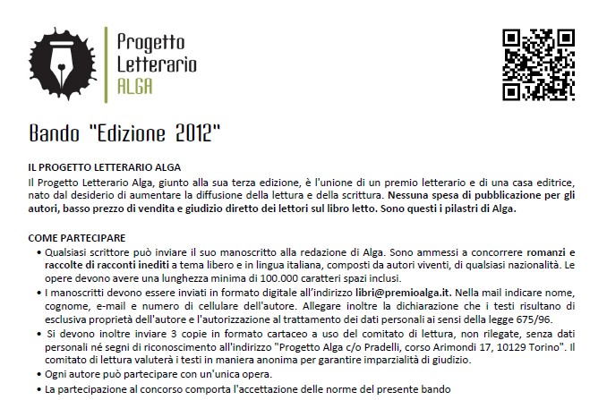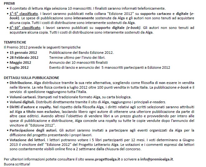 PROGETTO LETTERARIO ALGA, BANDO EDIZIONE 2012