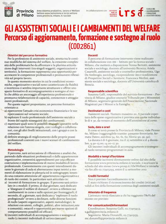 Locandina pubblicata su PROSPETTIVE SOCIALI E SANITARIE n. 7 /2012