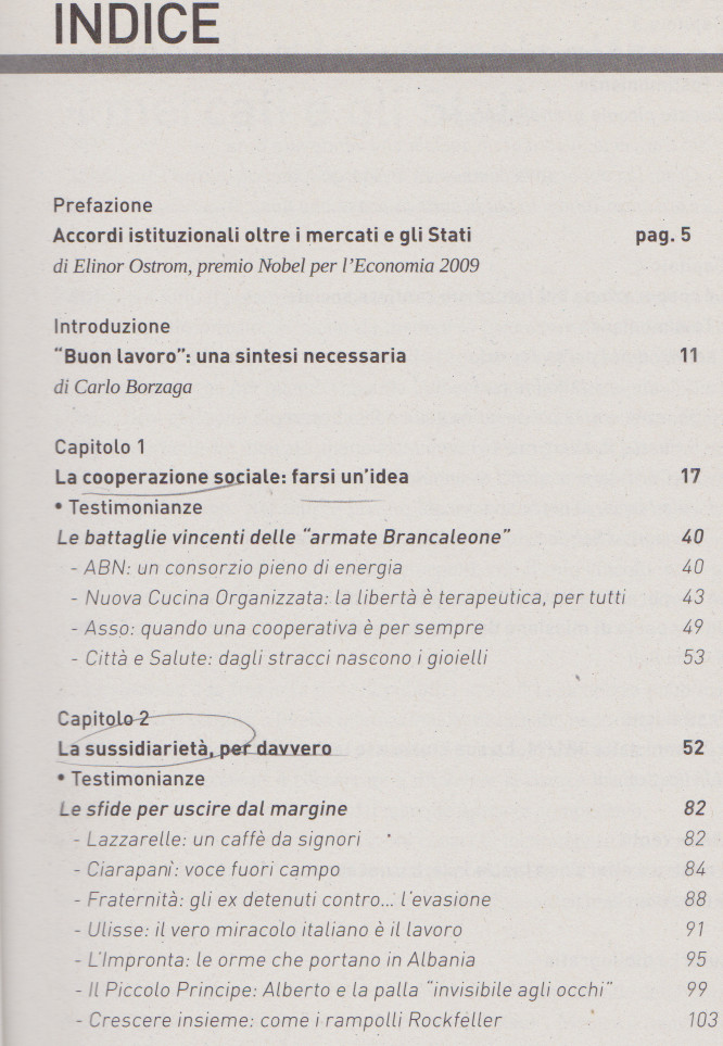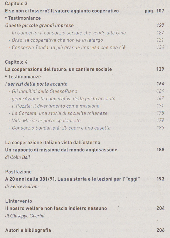 Francesca Paini, cooperatrice, racconta 20 storie esemplari di cooperative sociali. Con un contributo di Felice Scalvini, tra i padri della legge 381/91. La prefazione di Elinor Ostrom, prima donna a ricevere, nel 2009, il nobel per l’economia, spiega l’importanza della partecipazione attiva dei cittadini alle economie pubbliche locali.
