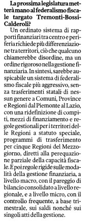 Pietro Giarda, ministro per i Rapporti con il Parlamento, su federalismo fiscale ed assetto dello Stato, in Sole 24 Ore del 5 ottobre 2012
