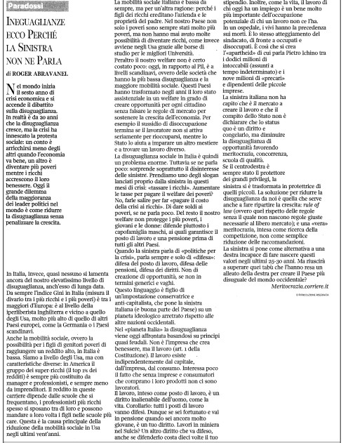 è un diritto e congelarlo, ma diminuire la disuguaglianza di opportunità favorendo meritocrazia, concorrenza, scuola di qualità. Se il centrodestra è sempre stato il protettore dei grandi privilegi, la sinistra si è trasformata in protettrice di quelli piccoli.