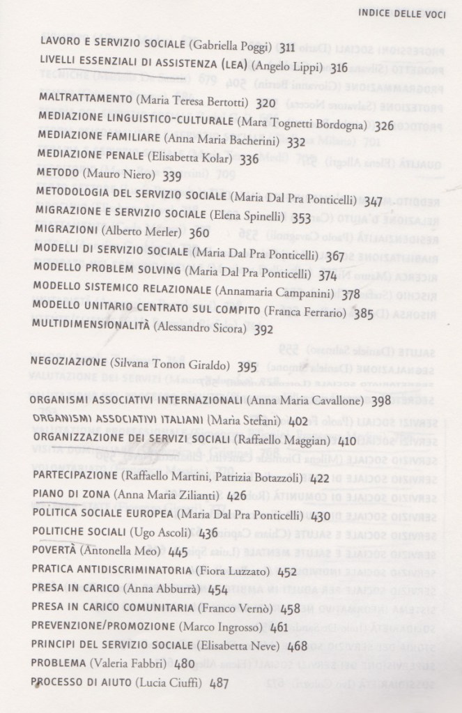 DIZIONARIO DI SERVIZI SOCIALI, a cura di Maria Dal Pra Ponticelli, Carocci Faber, 2005