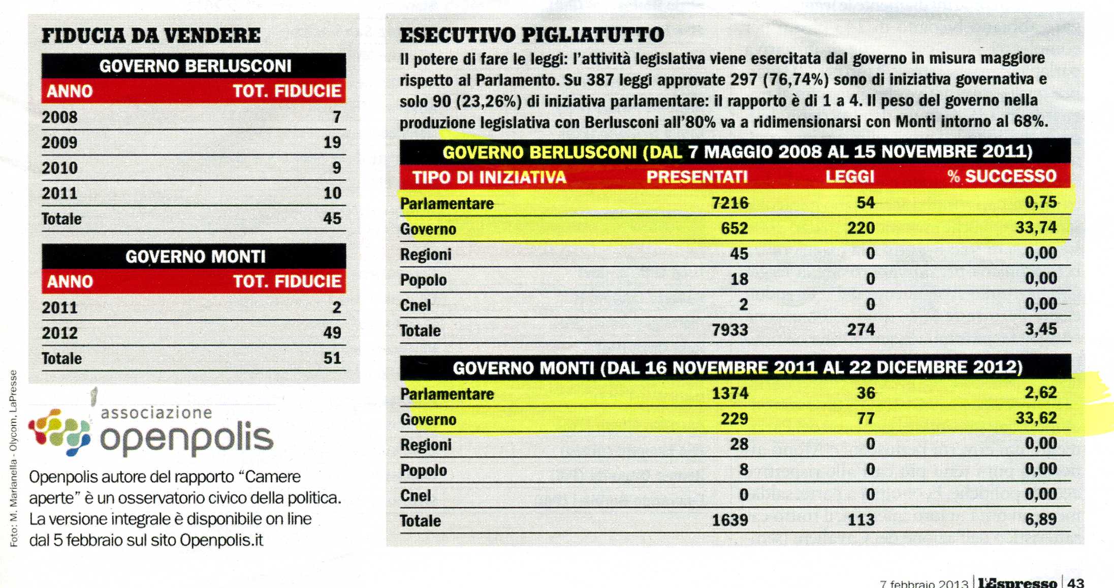 Attività legislativa del Parlamento nei Governi Berlusconi (2008/11) e Monti (2011/12)
