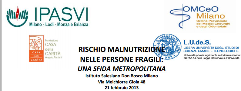 RISCHIO MALNUTRIZIONE NELLE PERSONE FRAGILI: UNA SFIDA METROPOLITANA, Milano, 21 febbraio 2013