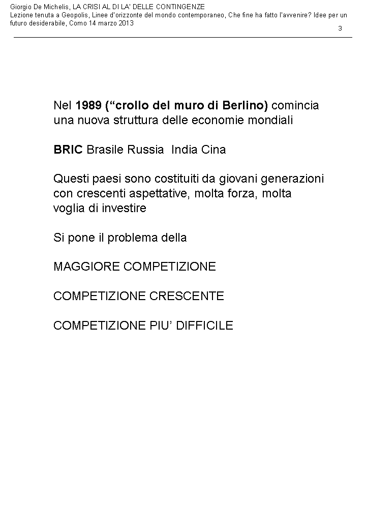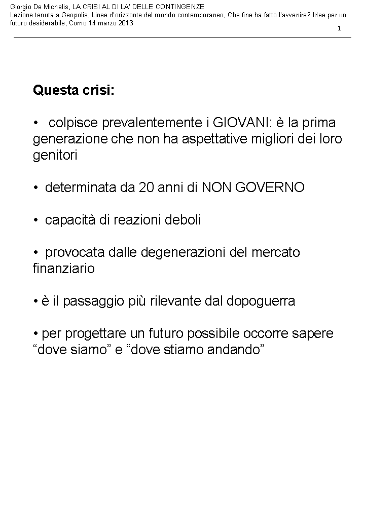 Lezione del prof De Michelis: