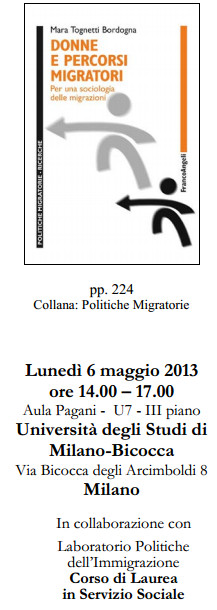 Presentazione del libro di Mara Tognetti Bordogna, DONNE E PERCORSI MIGRATORI, FrancoAngeli , alla Università di Milano Bicocca 6 maggio 2013