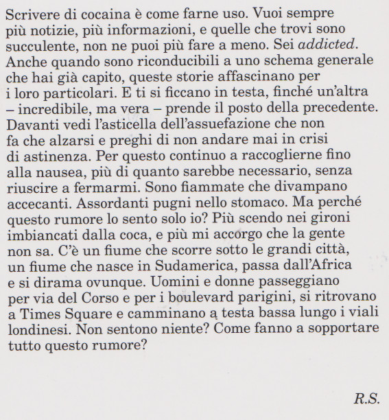 La cocaina: la merce più usata, trafficata, desiderata del nostro tempo. Il sogno dell’eccesso senza limiti che corrode le nostre vite e la nostra società. Il petrolio bianco che accende i corpi ma distrugge le menti. Le infinite vie del narcotraffico. Dal Messico alle spiagge di Miami, dalla Colombia alla Russia, dall’Africa alle strade di Milano, New York, Parigi. Il viaggio di un grande scrittore nei gironi infernali del mondo contemporaneo. Dove la ferocia dilaga incontrastata ma i boss hanno imparato tutte le regole più sofisticate del business. Le radici profonde della crisi economica attuale, il dilagare del capitalismo criminale, l’assalto mafioso ai santuari della finanza da Wall Street alla City. Il bisogno di raccontare, la potenza delle storie. Uno straordinario romanzo-verità, il capolavoro di uno degli autori più importanti e più amati.