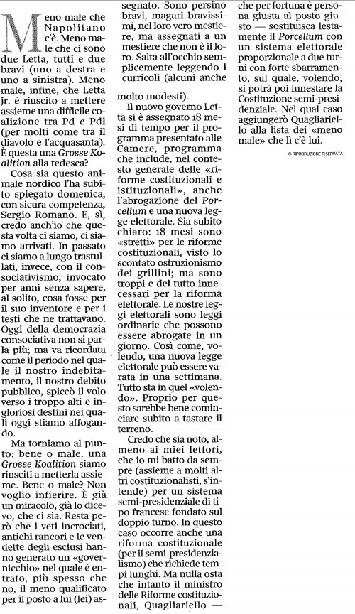 da Giovanni Sartori, LA LARGHEZZA E LA FRAGILITA’, Corriere della sera 1 maggio 2013