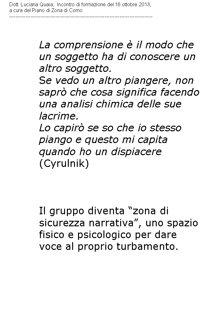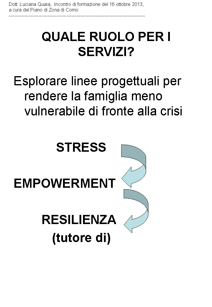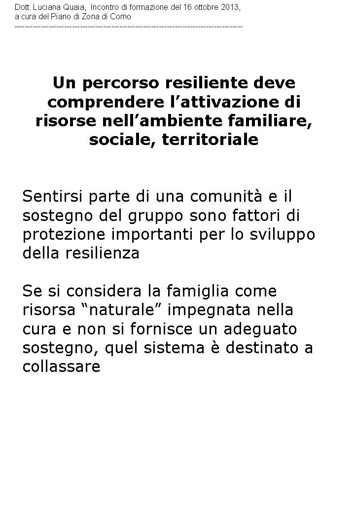 Luciana Quaia, ACCANTO AL MALATO: IL PUNTO DI VISTA DEL FAMILIARE E I POSSIBILI AIUTI DI SOSTEGNO, Incontro di formazione del 16 ottobre 2013, a cura del Piano di Zona di Como