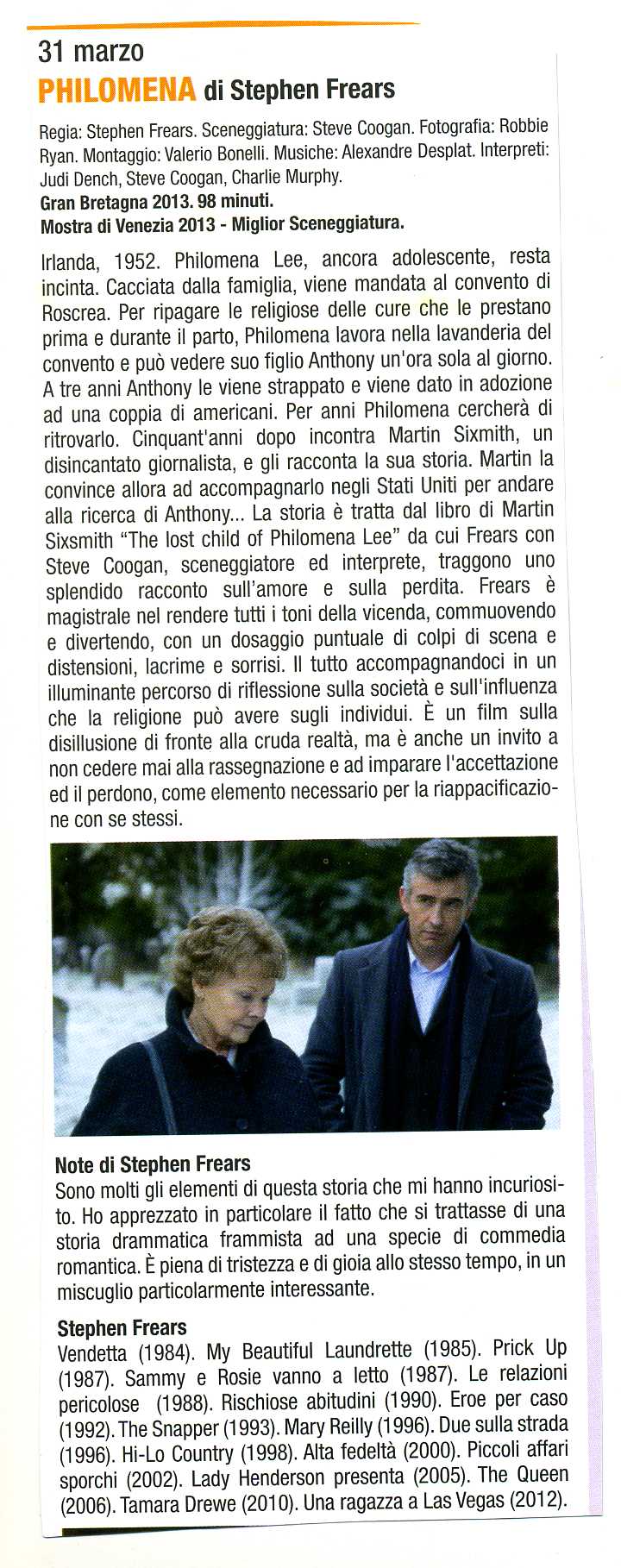 Philomena (Gran Bretagna, 2013, 94 minuti) di Stephen Frears