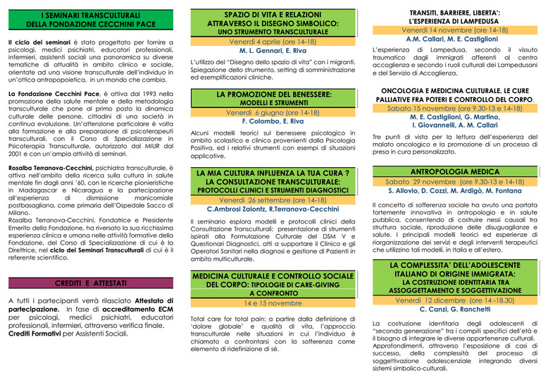 “Un approccio transculturale al cittadino globale: teorie e strumenti per la relazione di cura” |