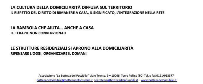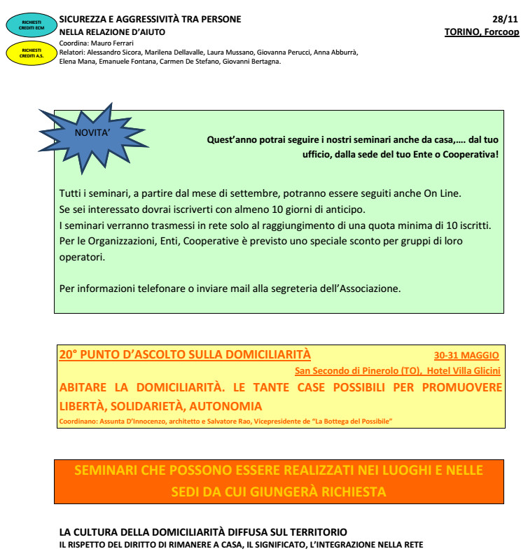 Sul nostro SITO (www.bottegadelpossibile.it) trovate i programmi dei singoli eventi e le modalità di iscrizione.