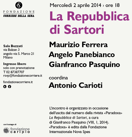 LA REPUBBLICA DI SARTORI, presentazione di Paradoxa, La Repubblica di Sartori, a cura di Gianfranco Pasquino, 2 aprile 2014