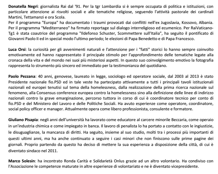 Nel pomeriggio viene presentata la mostra fotografica di Luca Orsi “Storie nelle storie”, nata da incontri reali tradotti in immagini per rivoluzionare lo stereotipo che spesso si ha del senza tetto.