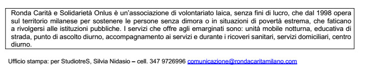 Per partecipare alla tavola rotonda che ha posti limitati dalla capienza della sala, occorre prenotare un posto inviando una e-mail all’indirizzo comunicazione@rondacaritamilano.com indicando: nome e cognome, ente di appartenenza come operatori o volontari, indirizzo e-mail.