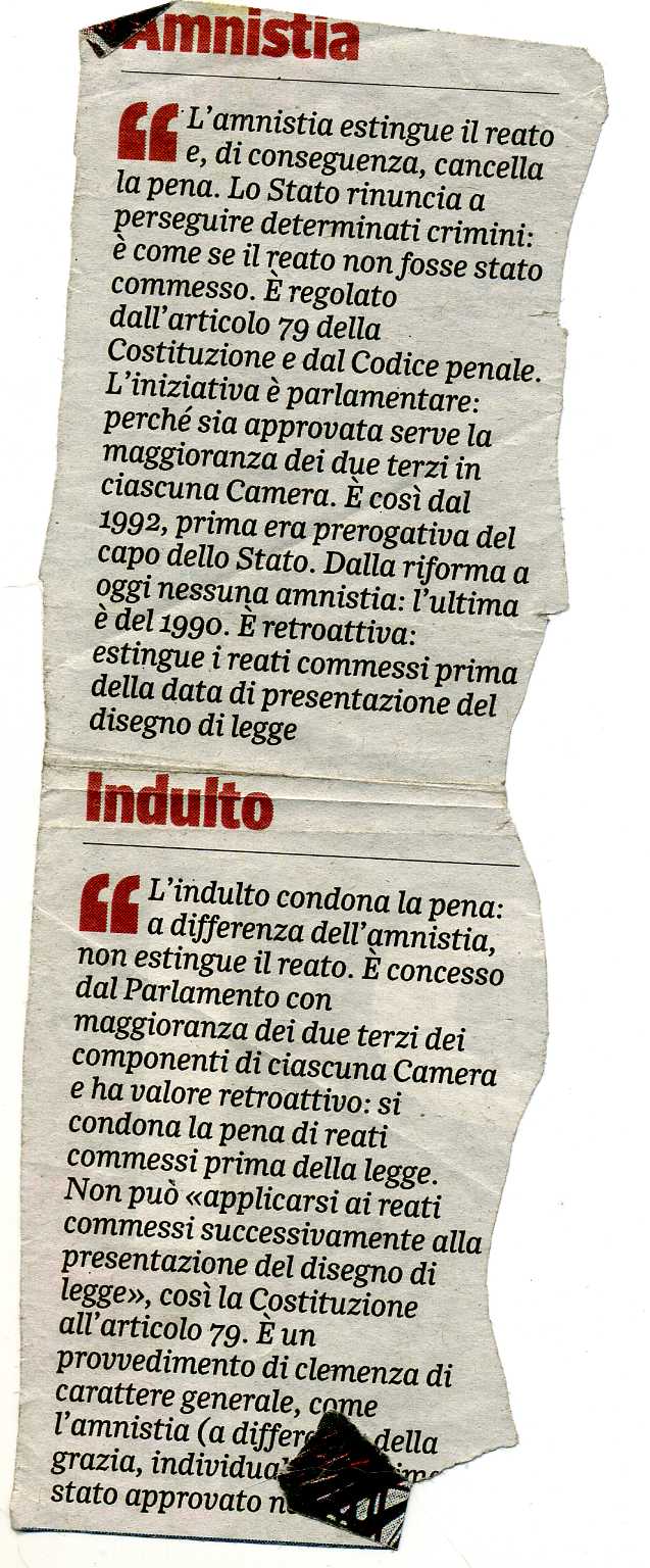 le differenze fra AMNISTIA e INDULTO