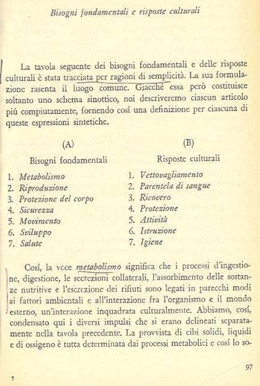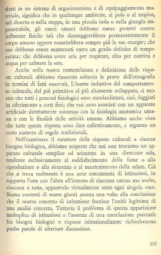 Bronislaw Malinowski, Bisogni fondamentali e risposte culturali, in Teoria scientifica della cultura, Feltrinelli 1971 (prima edizione: 1944)