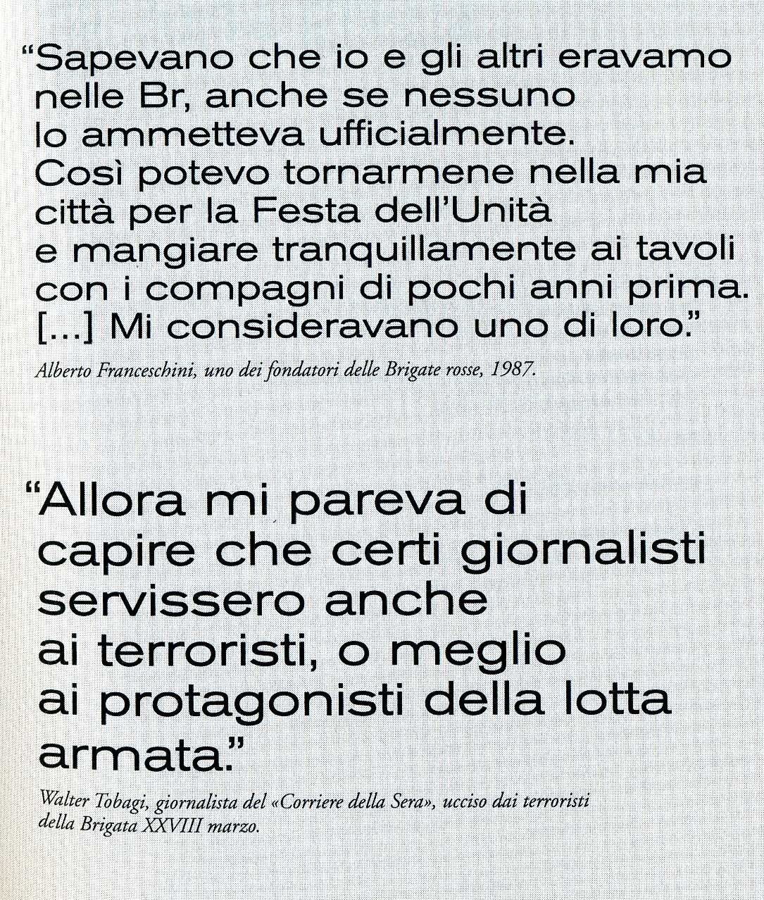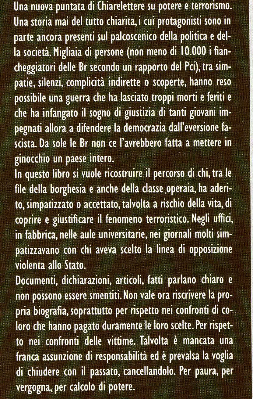 che parla dei fiancheggiatori di quagli assassini. Cioè delle persone che nei loro salotti, nelle sezioni di partito, nei giornali sostenevano sul piano ideologico (quello del letale “pensiero critico”) gli assassini