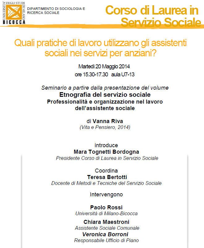 Vanna Riva, ETNOGRAFIA NEL SERVIZIO SOCIALE, Vita e Pensiero 2014, presentazione del libro il 20 maggio 2014, Università di Milano Bicocca