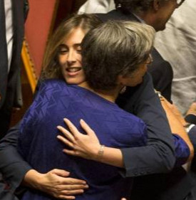 l’abbraccio fra Maria Elena Boschi e Anna Finocchiaro