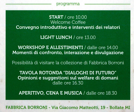 L’Azienda Speciale Consortile Comuni Insieme per lo Sviluppo Sociale, in occasione dei dieci anni di attività, organizza un evento di incontro e di dibattito sul welfare prossimo venturo. Una giornata di confronto e di incontro con interlocutori istituzionali, amministratori pubblici ed esperti di politiche sociali con uno sguardo orientato agli anni a venire., nella inusuale location di Fabbrica Borroni, spazio simbolico tra passato e futuro.