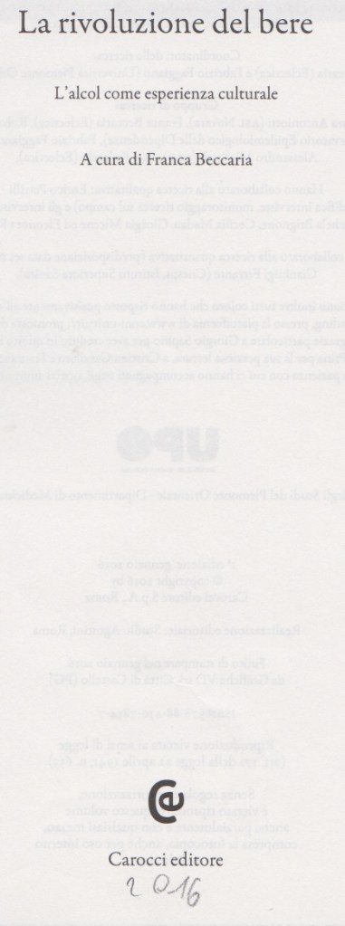 La rivoluzione del bere. L’alcol come esperienza culturale, a cura di Franca Beccaria, Carocci editore , 2016