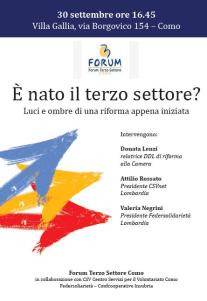 È nato il terzo settore? Luci e ombre di una riforma appena iniziata venerdì 30 settembre alle 16.45 a Villa Gallia, via Borgovico 154 Como.