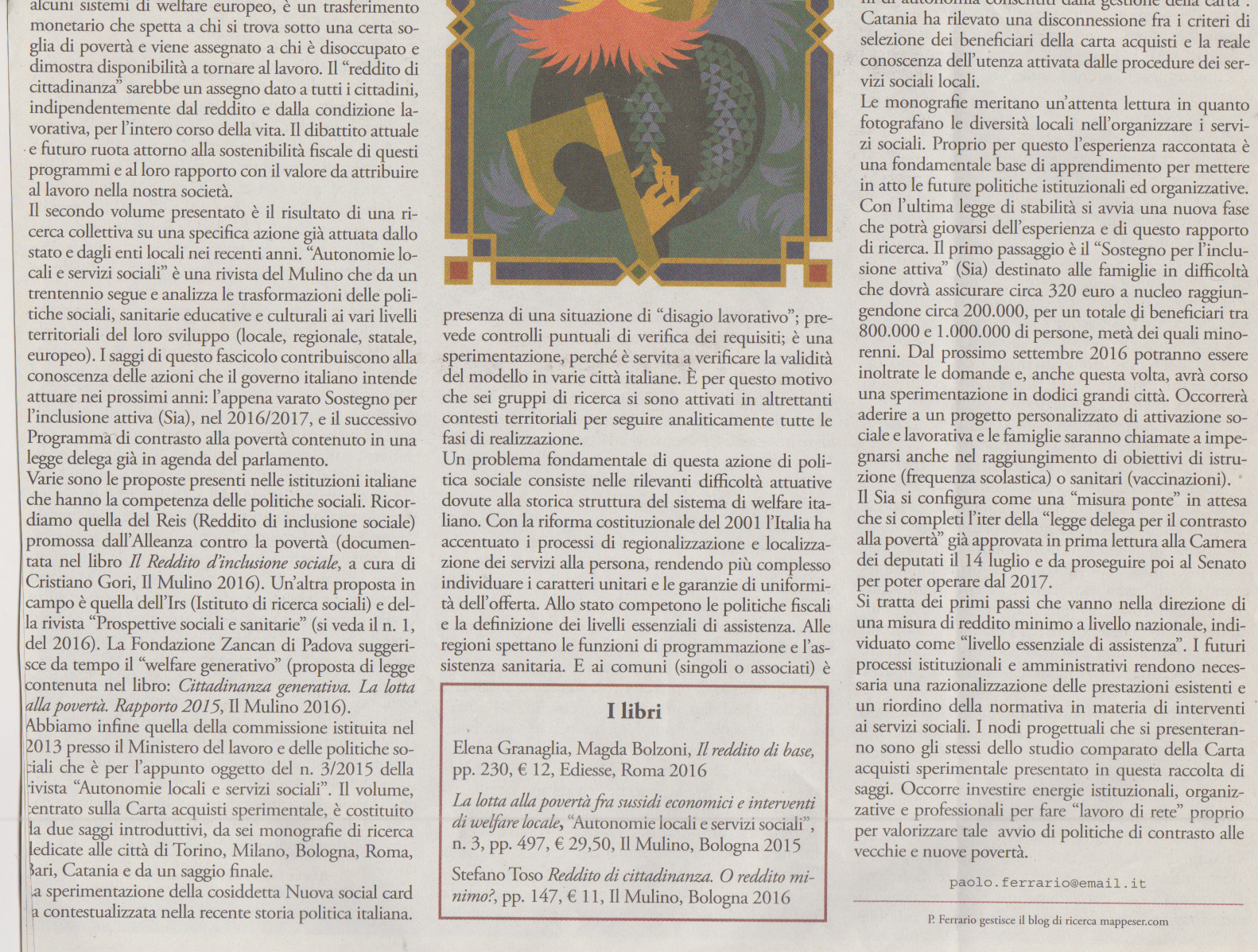 - differenze fra “reddito minimo” e “reddito di cittadinanza