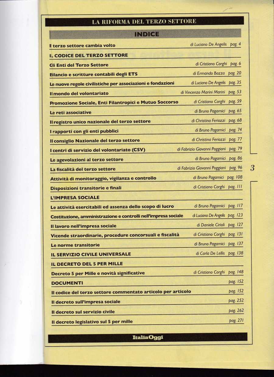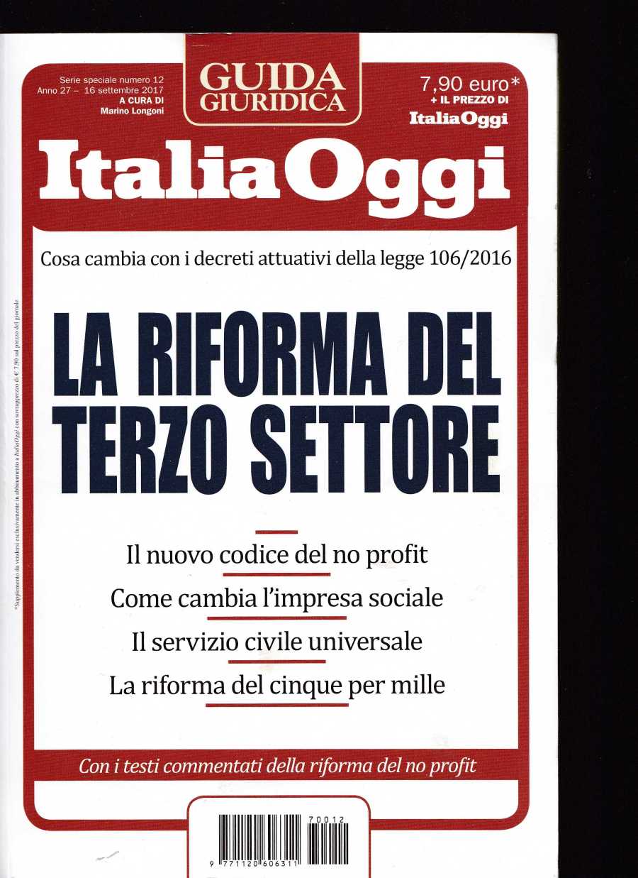 La riforma del TERZO SETTORE. Il nuovo codice del no profit, come cambia l’impresa sociale, il servizio civile universale, la riforma del cinque per mille, Italia Oggi – guida giuridica, settembre 2017