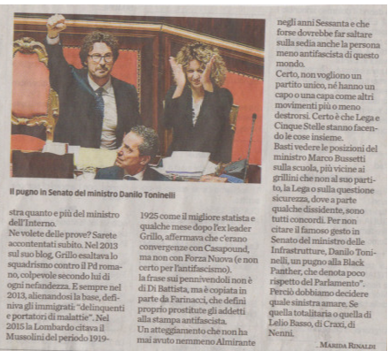 culture politiche: i grillini dei 5 stelle, analisi storica in una lettera pubblicata su un giornale locale: “I cinque stelle? Macchè sinistra, sono la destra”, 3 dicembre 2018