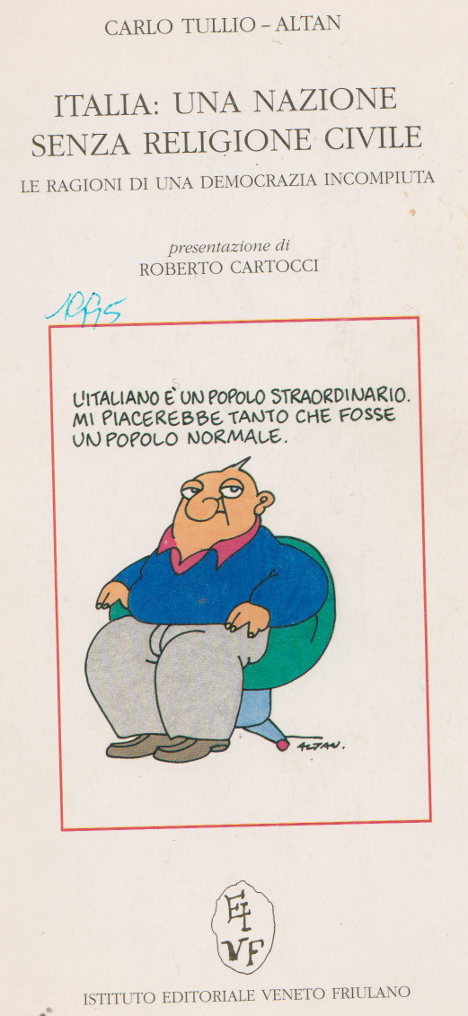 TULLIO – ALTAN Carlo, Italia: una nazione senza religione civile. Le ragioni di una dmocrazia incompiuta, Istituto editoriale veneto friulano, 1995, p. 80. Indice del libro