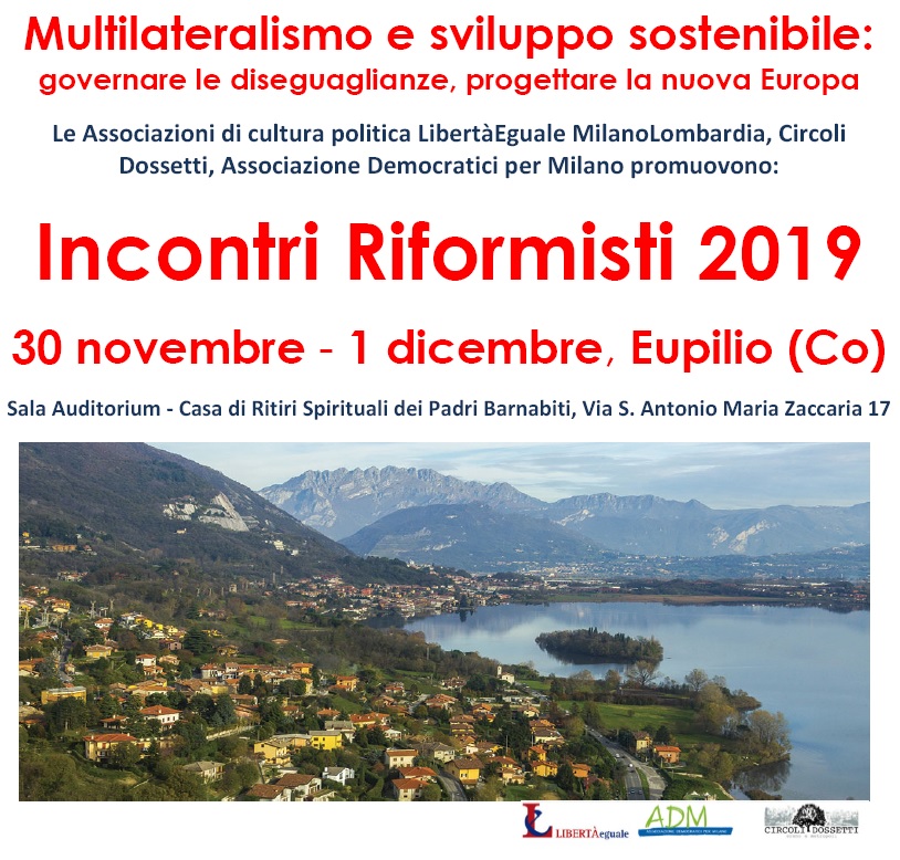 Incontri riformisti 2019: multilateralismo e sviluppo sostenibile, a Eupilio (COMO), 30 novembre, 1 dicembre 2019